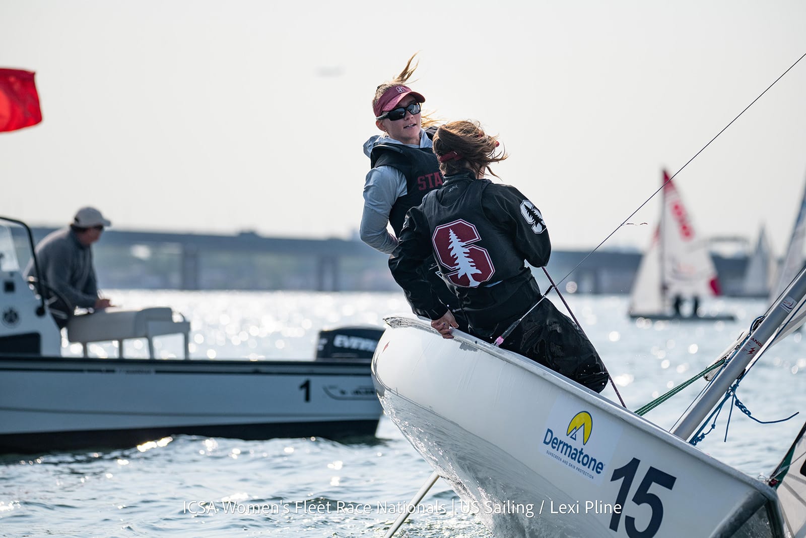 ML: I think the most important one, for Stanford, was winning the Open Fleet Race, because we were the first women’s team to do it. That was very unexpected. People weren’t even talking about Stanford in the top seven. We were such underdogs going into that. But we had sailed Women’s Nationals right before it, and the conditions were pretty much identical. Luckily we new exactly what was going on and we knew all the tide charts, all the topographies, we could just totally sink in and we knew where the lefties would come in or where that current line was, because we had been sailing for 10 days straight already. It was like second nature already in that venue. It was not only a historic win, but it really brought to light how sailing is such an equalizer.