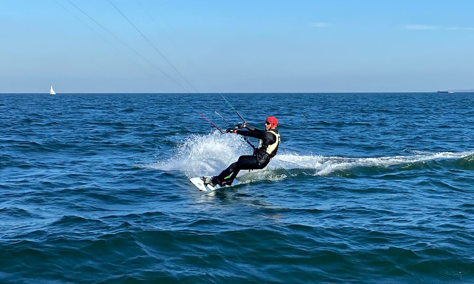 One thing that gave Peter the space to really fall in love with kiting was the extra free time he had after retiring. But for those who may not have that time luxury, the benefits to launching from a boat are even more significant. As Peter explains, “when you go from a boat, you can launch in many different directions and it doesn’t really matter which way the wind is coming from. From the beach, you’re really restricted to days when the wind is blowing either onshore or, so called, side shore. Which just cuts the number of days you can kite in half”. And if you’re restricted to kiting on Saturdays and Sundays, you might make your plans based on a forecast, but when the front comes through at midnight instead of noon, you wake up and your weekend plans are ruined. So this extra flexibility is really helpful because, as Peter puts it, “anybody who’s kited knows this sort of inability to make plans, given the vagaries of the wind.” Tom adds that “[I]t’s the same mentality as surfing, because we’re always waiting for the waves and the tide and the offshore winds to be right. And when you get the call to say, ‘it’s on’, it’s on. Nature doesn’t wait for you, you’ve gotta go.” But for those who need to balance nature with the demands of a full time job, the boat launch allows you to maximize your kiting time.